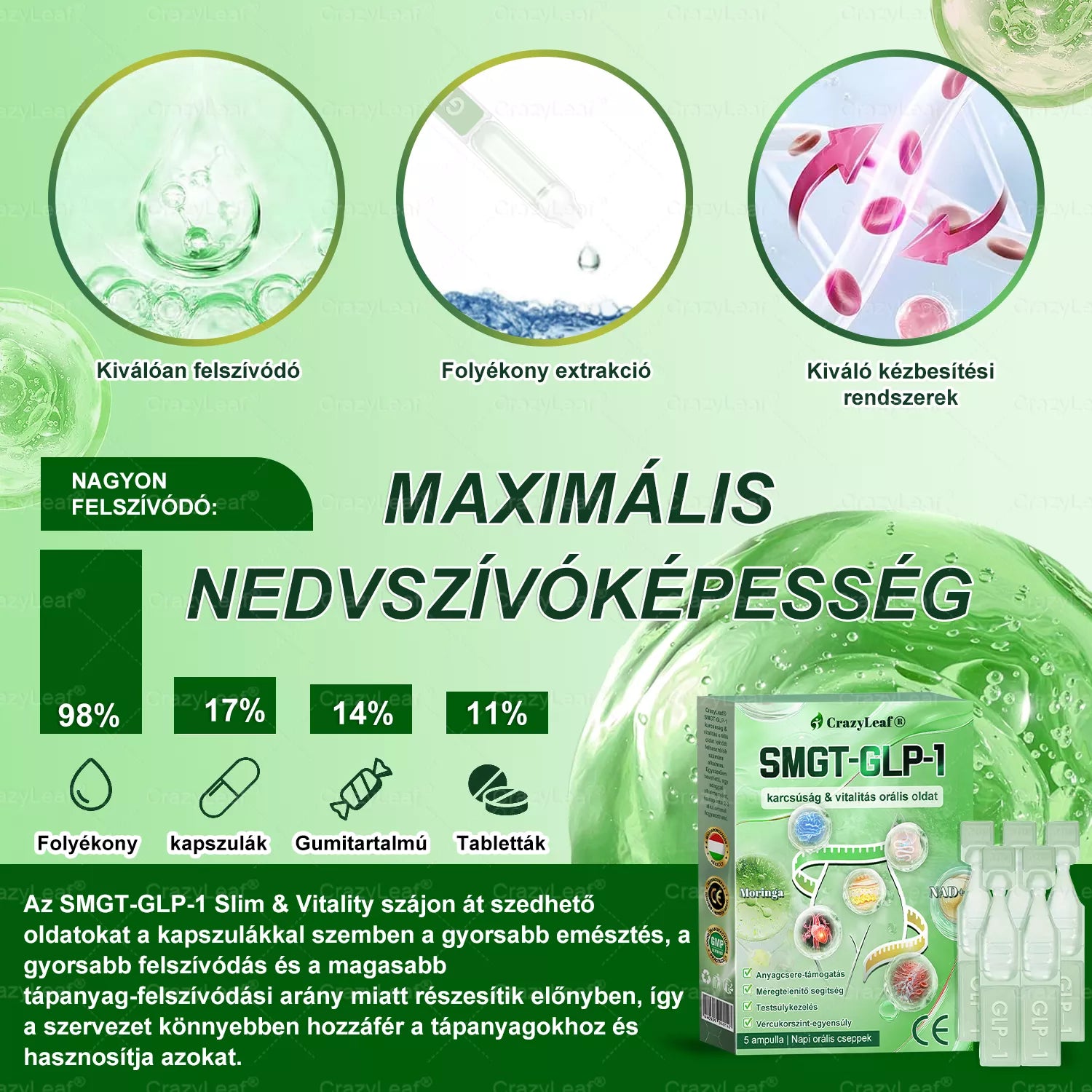 Az endokrinológus által klinikailag tesztelt CrazyLeaf® SMGT-GLP-1 Karcsúsító és Vitalitás Orális Oldat aktiválása mindössze 7 nap alatt jelentősen javíthatja az elhízást és egyéb egészségügyi problémákat.