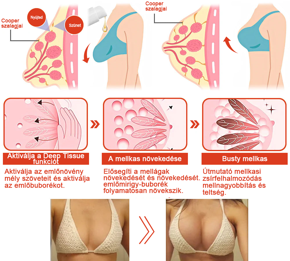 "𝗦𝗧𝗗𝗘𝗜™ MÁGIKUS LUXUS TESTOLAJ nagymértékben javította a magabiztosságomat a megereszkedett melleim miatt. Csodás érzés, hogy simább, fiatalosabb kinézetű bőröm van! Néhány hete használom az olajat, és már most észreveszem a változásokat a melleim körüli bőrön. Az olaj rendkívül könnyen alkalmazható, gyorsan felszívódik, így reggel, öltözködés előtt is használhatom, anélkül hogy maradványt vagy zsíros érzetet hagyna. Nagyon tetszik, hogy természetes összetevőket, mint a csipkebogyó olaj és niacinamid, tartalmaz, amelyek feszesítik és megújítják a bőrt. Biztonságos, és nem okoz irritációt, így sosem aggódom a mellékhatások miatt." - Tóth Júlia, Miskolc ⭐⭐⭐⭐⭐
